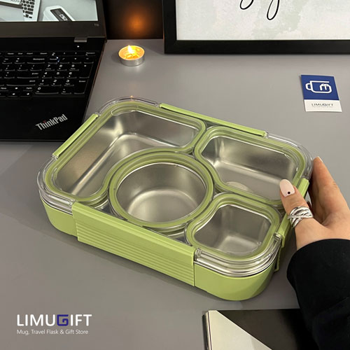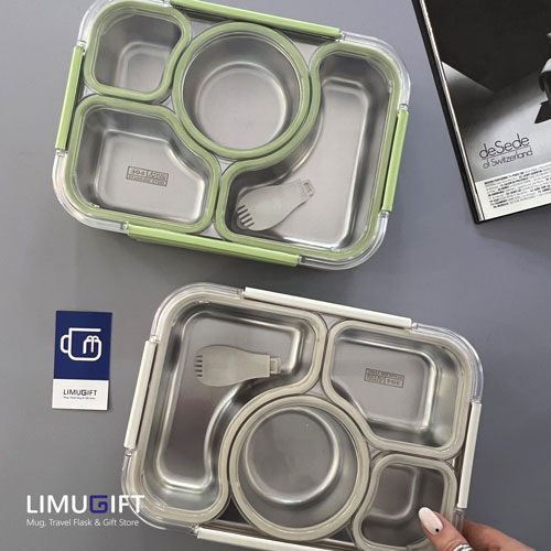 - همه قسمت های لانچ باکس دارای واشر سیلیکونی میباشد که باعث عدم نشتی میشود و هم چنین محتویات قسمت های مختلف ظرف باهم مخلوط نمیشوند